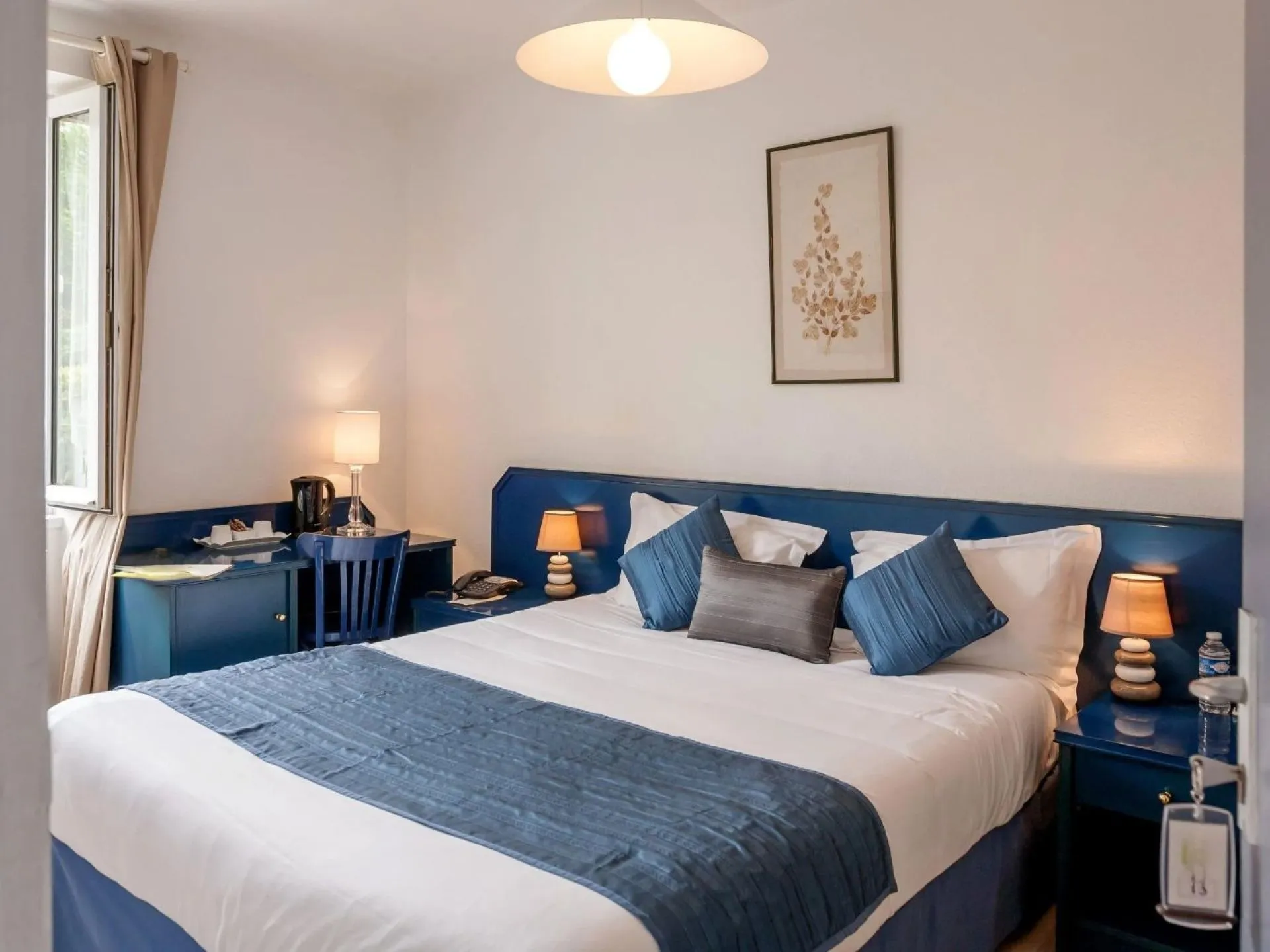 Nos chambres, décorées avec soin, offrent calme et confort pour une nuit reposante en solo, en couple ou lors d’un déplacement professionnel.